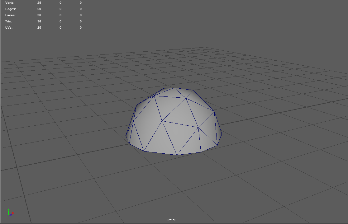 First I modeled a Hemi-Octahedron mesh that I would use as a the rendering base for my cameras. This mesh style, found on ShaderBits by Ryan Brucks, helps optimize the mesh. The TRIS that make up the mesh are evenly spaced throughout when compared to a sphere, and is better for blending because of the volume of vertices. Additionally, since it's a mesh based on TRIS, I'll only need to blend 3 renders at a single time.
