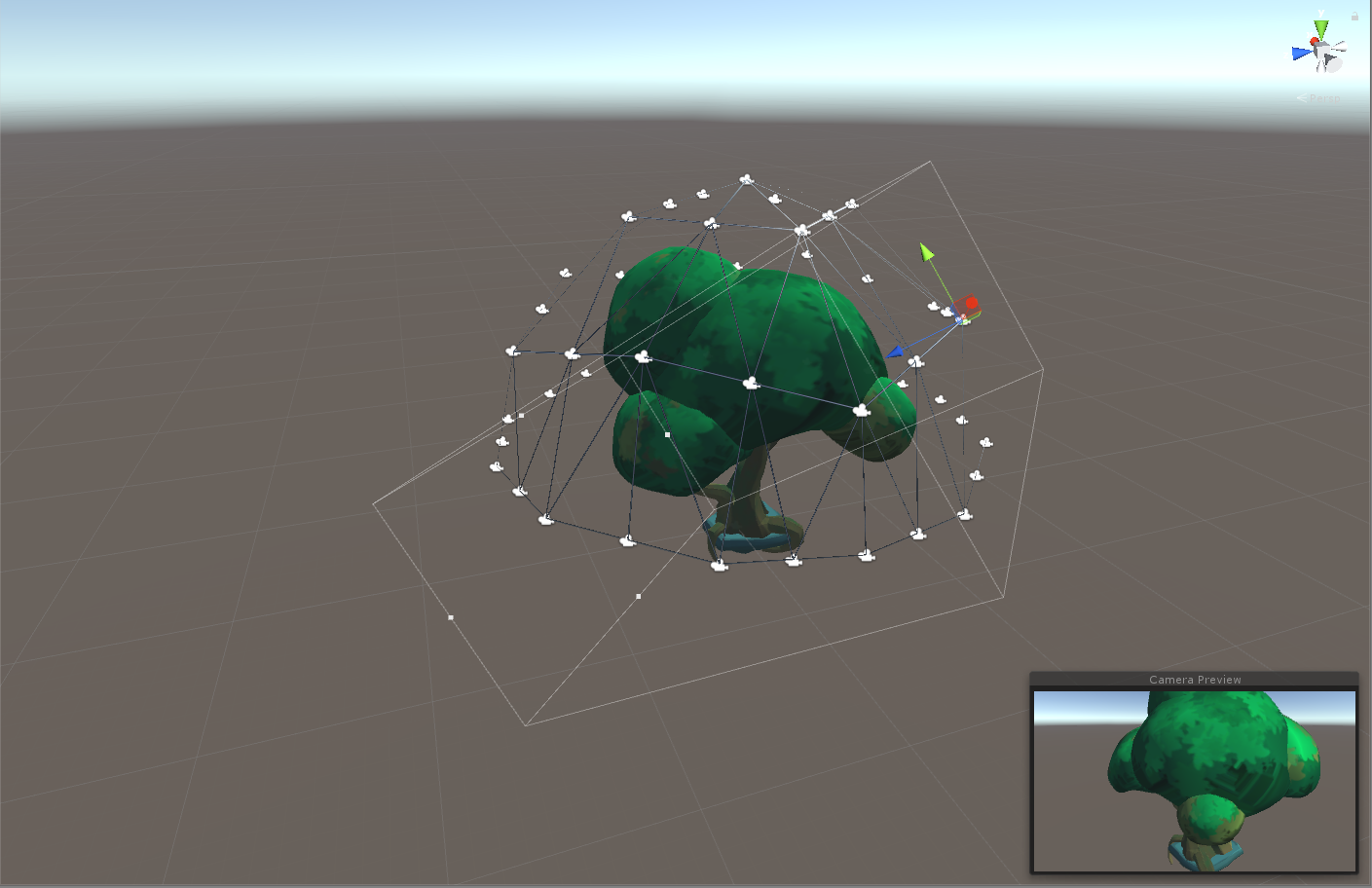 After modeling the mesh, I imported it to Unity and began scripting ways to instantiate cameras all around the vertices. The results are shown below